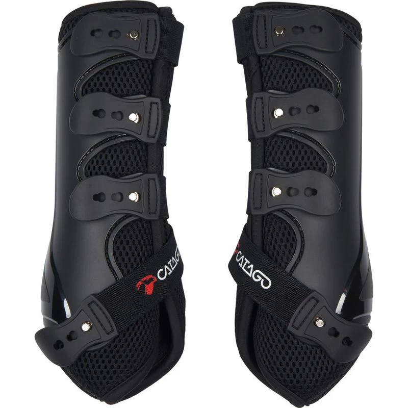 A combination of a hard shell and a soft mesh material allows excess heat to escape while protecting against strikes of the flexor tendon. The 4th strap under the fetlock offers maximum support of the suspensory and flexor tendons thanks to the anatomic and elastic properties of the boot. 4 elastic straps allow for a customized fit while quick release tabs hold securely yet are easy to put on and remove.