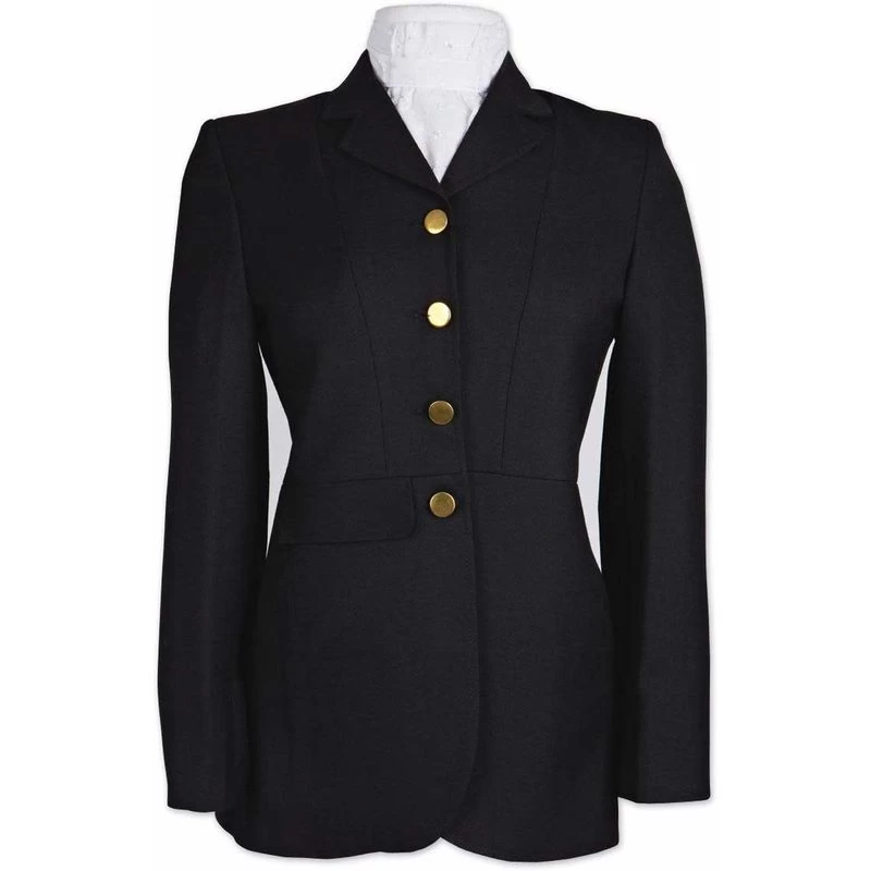 The easy care wool blend Dressage Frock, by Ovation, is a classic show-ring ready jacket. Features include 4 button notch lapels, a back vent, and a front flap pocket.