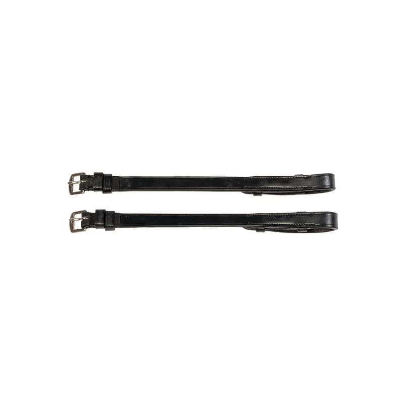 Smooth leather. Horse size is 5/8″ wide, and pony size is 1/2″ wide.