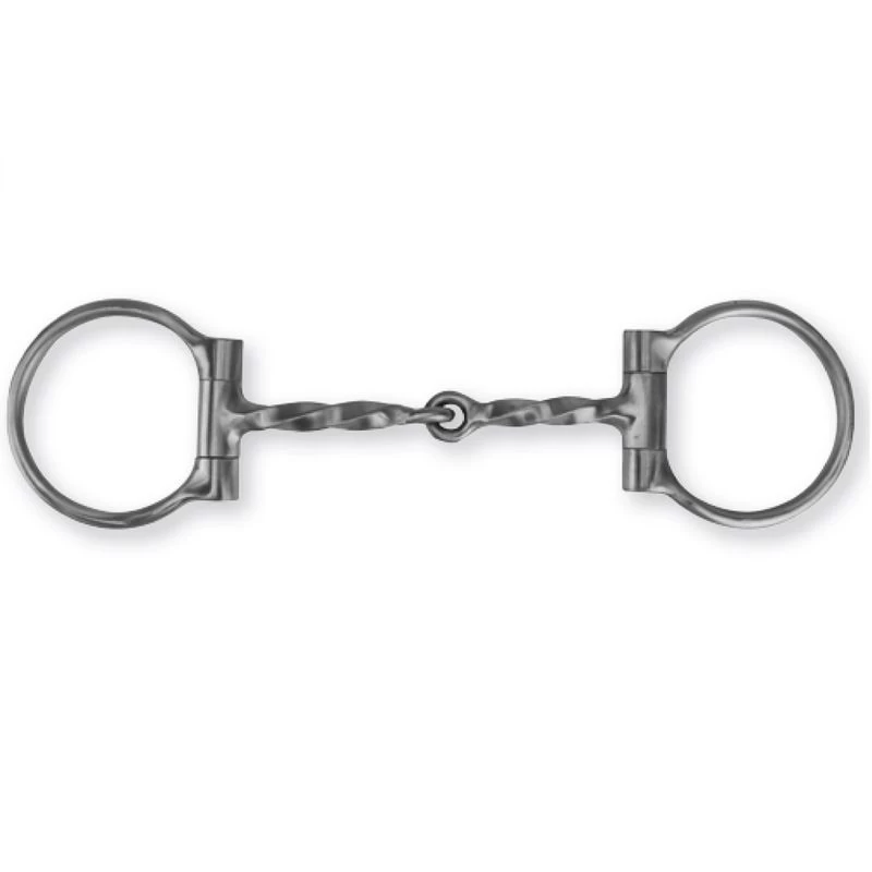A Western Dee typically has a rounder shape than an English Dee, somewhat more like an eggbutt. It is a direct rein bit and will not pinch at the lips as an o-ring can. The square slow twist is a stronger bit than a regular slow twist.
